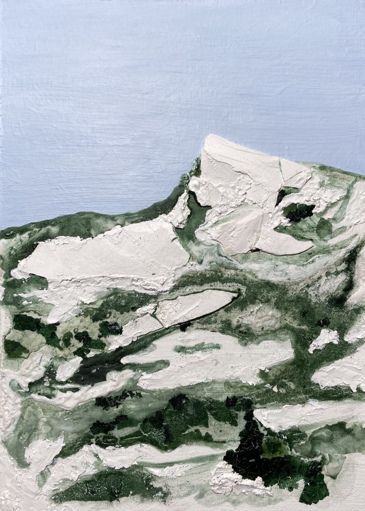 ‘Alterations at Altitude’ are landscape paintings that slowly change over time. For this, I use self-made unstable paint consisting of algae or iron powder. The influence of moisture and sunlight causes the landscape in the painting to evolve.