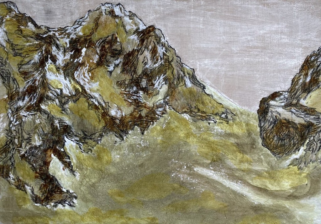 Mountains have always been a place where I feel most at home and a significant source of inspiration for me. The peaks symbolize remote nature, not part of our daily lives. While nature is available in the Netherlands, much of it is human-made. We now exert so much influence on nature that even the massive mountains are changing, once seemingly felt untouchable in my childhood.